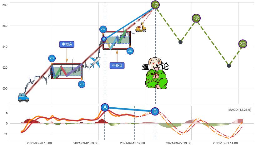 ➣ 【未完成】缠论 起点:08-13:15, 完成第1中枢A,完成第2中枢B,到达09-09:15
