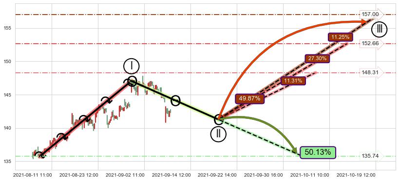➣ 循环浪继续向上【平均值】位置(10-13:13, 152.66),匹配聚类样本比例54.75%, 可能性概率27.30%