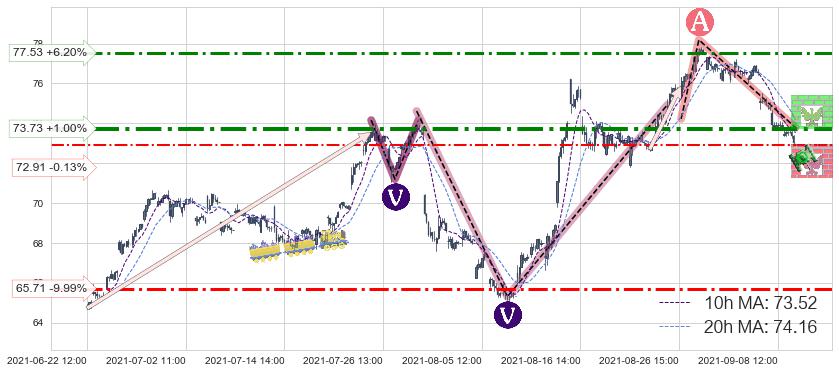 ♘ 阻力价格位73.73,可信任强度83.26%,距离最后交易2021-09-09 15:00形成的收盘价格73.00相差 +1.00%
