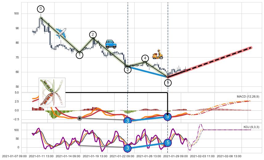 ➢ 最后的下跌趋势2021-01-08 11:00至2021-01-28 13:00:存在突破迹象,后续小反弹或者反转上涨