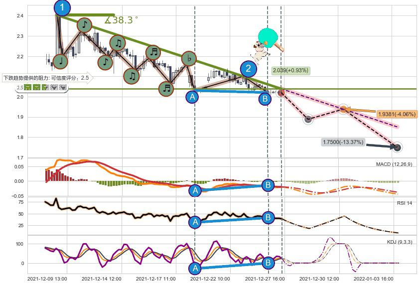 ♘ 阻力价格位2.371,可信任强度59.16%,距离最后交易2021-12-27 15:00形成的收盘价格2.020相差 +17.39%