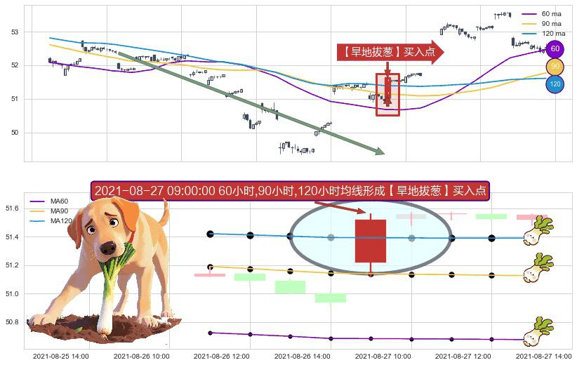 形态多维评估: ⚀ 2021-08-27 09:00:00小时显现 60小时-90小时-120小时均线 【旱地拔葱】买入点 看多信号,后市看涨,买入