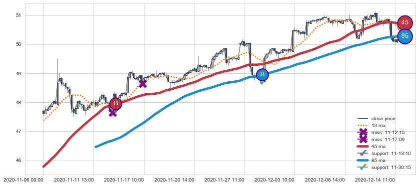 上涨趋势11-06 09:00-12-14 12:00,均线85, 45确认关键支撑2处