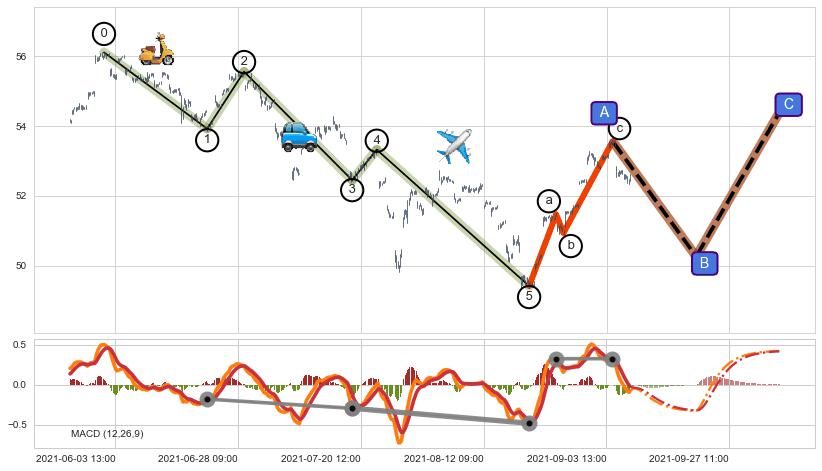 | 13 🅚:【高山滑雪】买入点 ➕ 🌊:波浪理论猜想下跌浪5已形成,猜想后续形成abc反弹上涨(均值回复) ☞ 看多信号 ⇥ 【均线】交织【图形】⇥ 综合量化分数: 72 | > |
