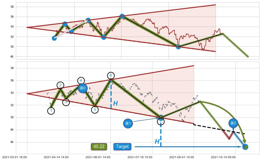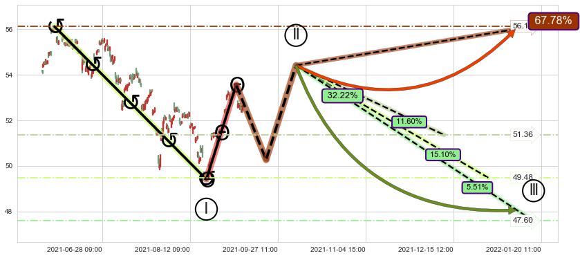 ➣ 【仅预测突破】最后价格:52.55与预测突破价格:49.95→【空间临近】后续最小【反转】第一目标价格→(10-22:12: 45.22 )