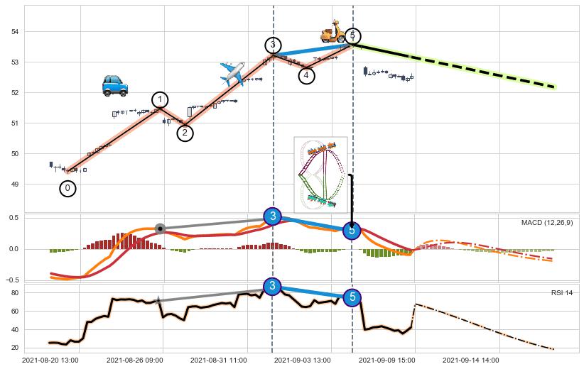 ➢ AI预测: 假定反转继续,第❸价格目标位置(10-05:15, 56.12)