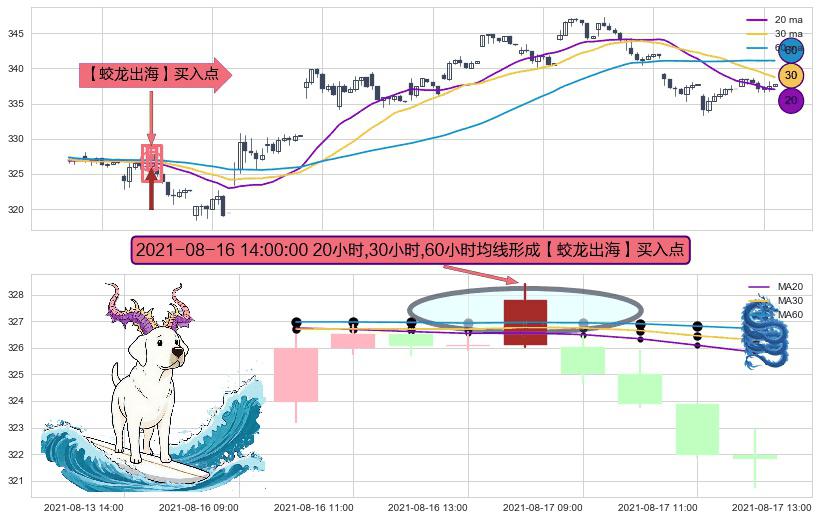 ⚀ 2021-08-16 14:00:00小时显现 20小时-30小时-60小时均线 【蛟龙出海】买入点 看多信号,后市看涨,买入