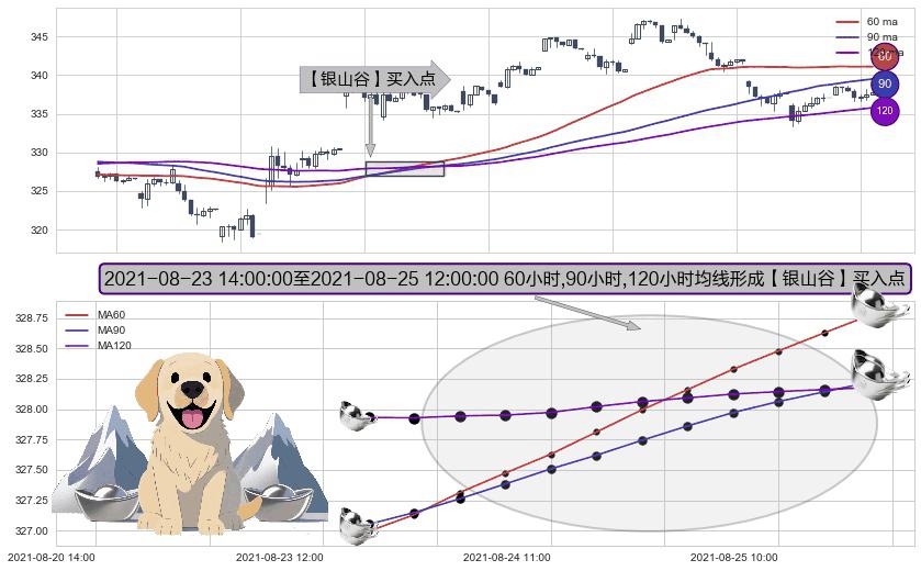 ⚀ 2021-08-24 09:00:00-小时至2021-08-25 12:00:00-小时显现 60小时-90小时-120小时均线 【银山谷】买入点 看多信号,后市看涨,买入