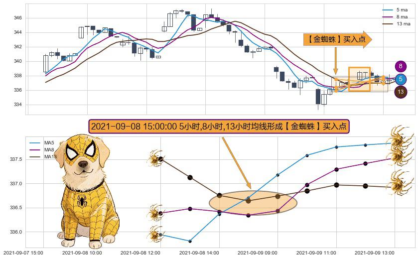 ⚀ 2021-09-08 15:00:00小时显现 5小时-8小时-13小时均线 【金蜘蛛】买入点 看多信号,后市看涨,买入