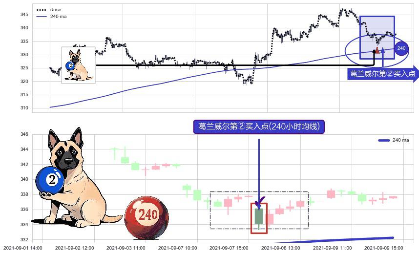 ⚀ 2021-09-08 09:00:00-小时显现 葛兰威尔均线 240小时均线 第②买入点 上升趋势的中继信号,后市看涨,买进信号