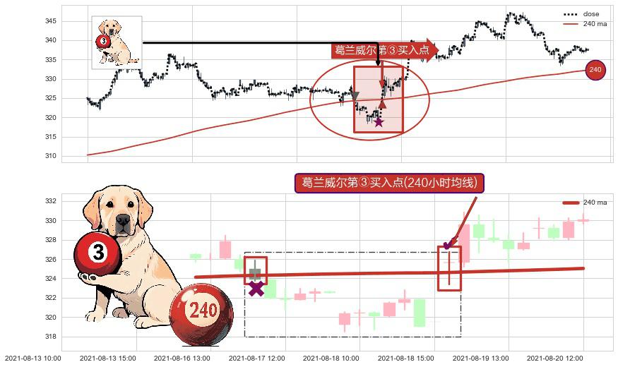 ⚀ 2021-08-19 09:00:00-小时显现 葛兰威尔均线 240小时均线 第③买入点 上升趋势的中继信号,后市看涨,买进信号