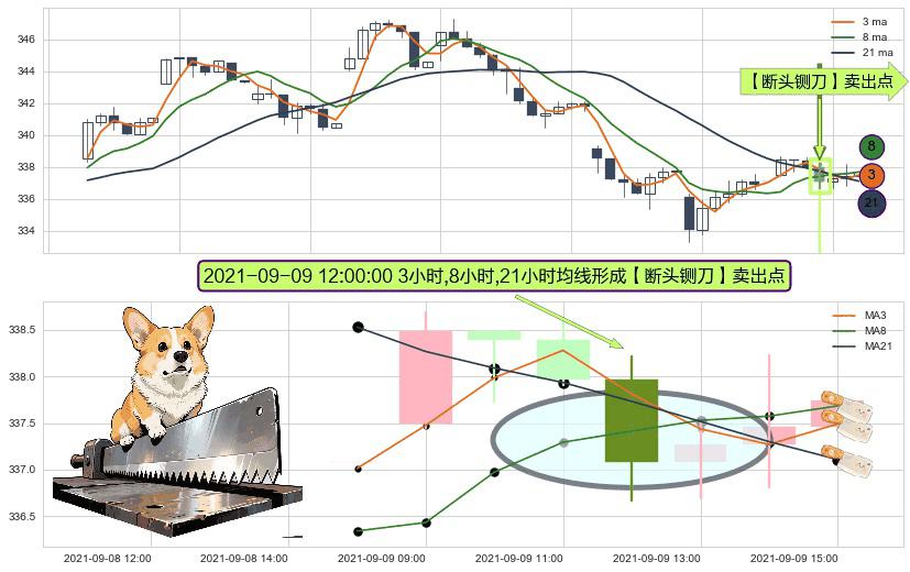 ⚀ 2021-09-09 12:00:00小时显现 3小时-8小时-21小时均线 【断头铡刀】卖出点 看空信号,后市看跌,卖出