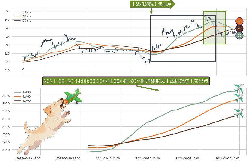 ⚀ 2021-08-19 09:00:00小时-2021-09-03 11:00:00小时显现 30小时-60小时-90小时均线 【战机起航】卖出点 看空信号,后市看跌,卖出