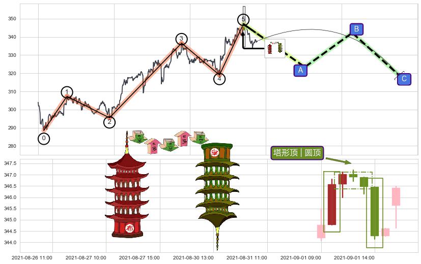 | 4 🅚:下跌Pinbar组合信号 ➕ 🌊:波浪理论猜想上涨浪5已形成,猜想后续形成回调abc下跌(均值回复) ☞ 看空信号 ⇥ 【🅚线】交织【图形】⇥ 综合量化分数: 42 | > |