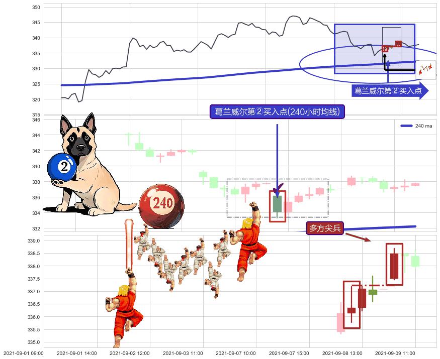 ➢ 低点影线(09-09:12: 336.67 )→回踩→第一根k线高点(09-08:15: 337.08 )