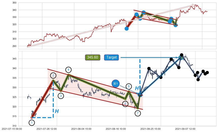 ➢ 最小中继整理涨幅→𝐇: 39.00 (𝐇楔型旗杆的长度:楔型起点→顶点)