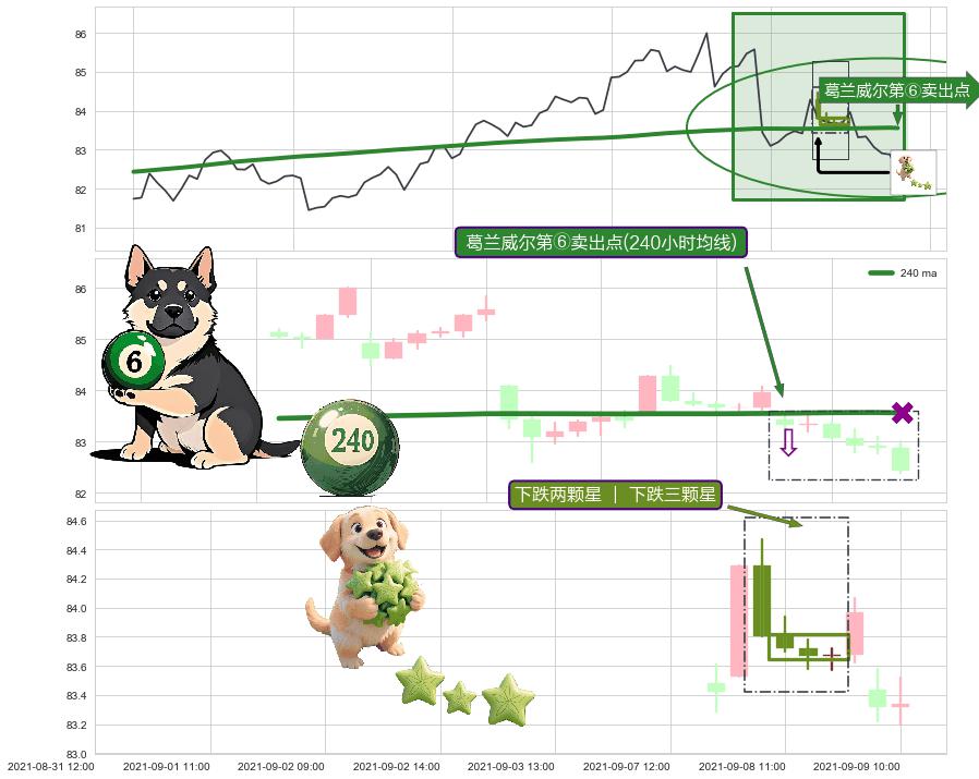 | 3 🅚:升势停顿 ➕ 🎢:葛兰威尔第⑥卖出点卖出点信号形成后,猜想后续上涨趋势反转下跌趋势(均值回复) ☞ 看空信号 ⇥ 【均线】交织【🅚线】⇥ 综合量化分数: 40 | > |