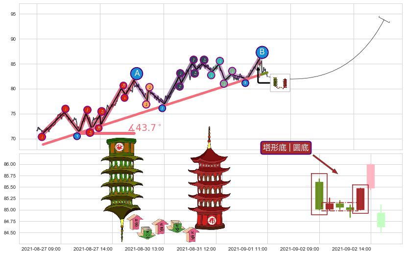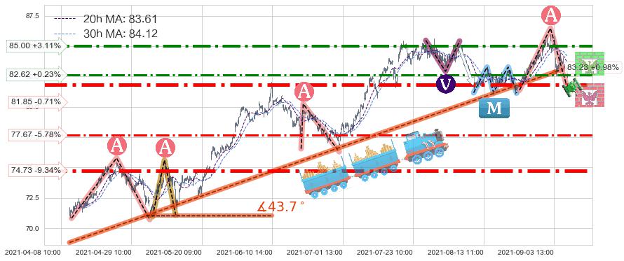 ♘ 阻力价格位85.00,可信任强度74.37%,距离最后交易2021-09-09 14:00形成的收盘价格82.43相差 +3.11%