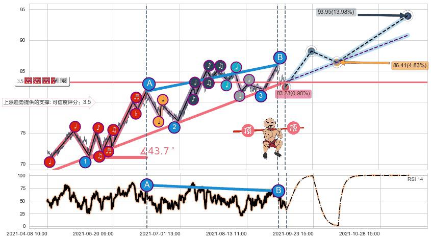 ➣ 预测:2021-10-07 10:00,【试探支撑】稳定目前上涨趋势的前提下,预测价格:86.41