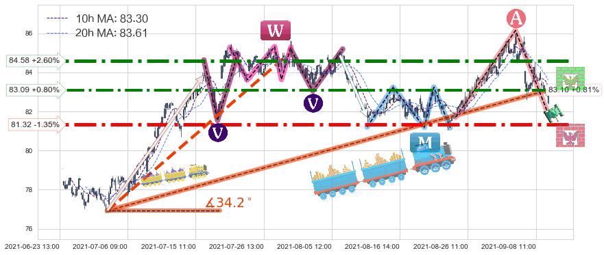 ♞ 10小时均线:83.30,20小时均线:83.61→ 快线<慢线