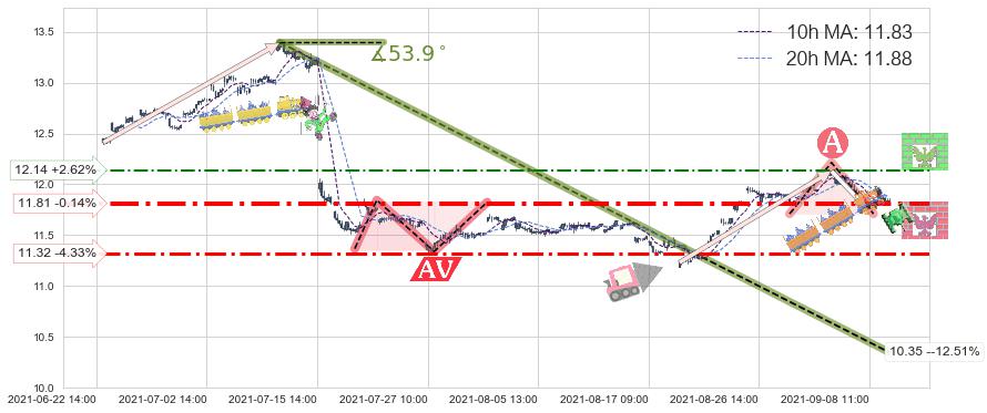 ♘ 阻力价格位12.14,可信任强度48.19%,距离最后交易2021-09-09 14:00形成的收盘价格11.83相差 +2.62%