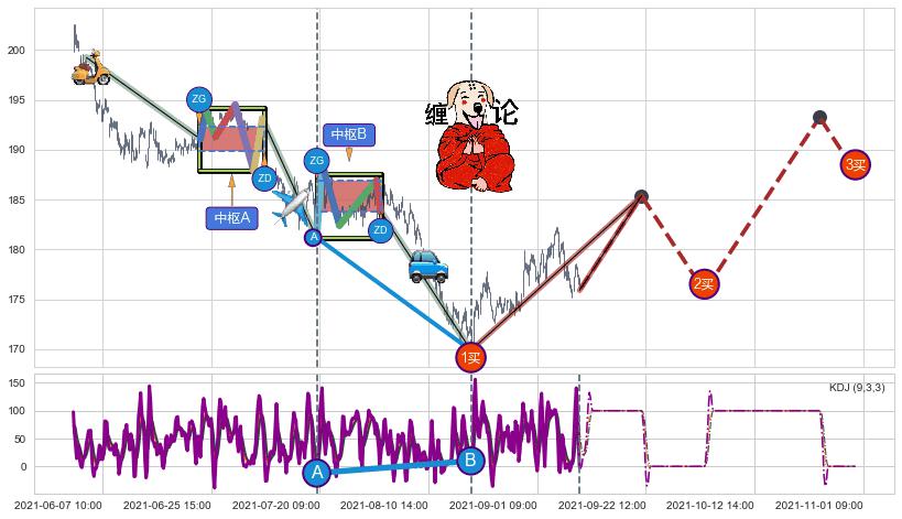 ➣ 【已完成】缠论 起点:06-02:15,完成第1中枢A,完成第2中枢B,终点:08-18:14,缠论共355交易小时