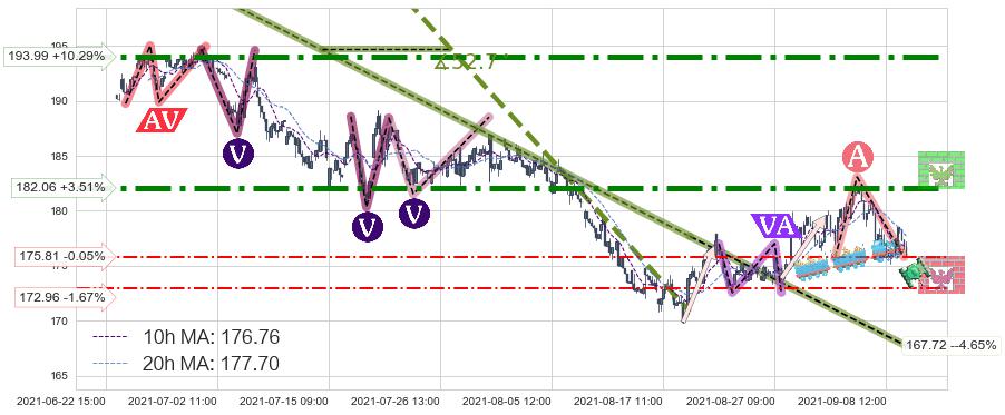 ♘ 支撑价格位172.96,可信任强度53.70%,距离最后交易2021-09-09 14:00形成的收盘价格175.89相差 -1.67%