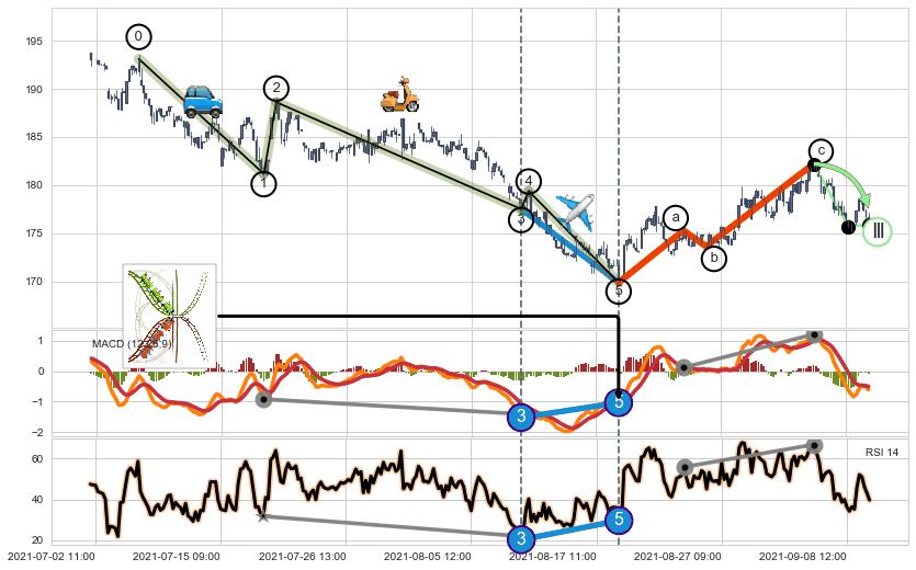 ➢ a,c调整浪MACD, RSI, KDJ走势都【未出现】背离,abc走势延续, 5浪反转概率增强