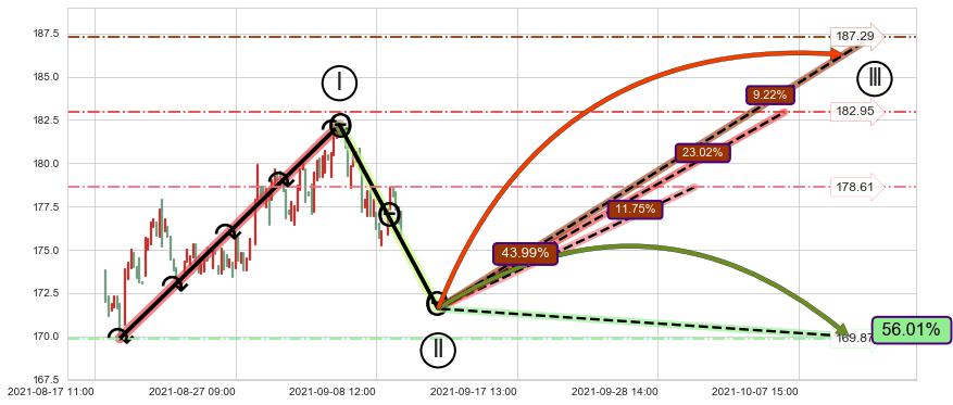 ➣ 循环浪继续向上【平均值】位置(10-07:10, 182.95),匹配聚类样本比例52.33%, 可能性概率23.02%