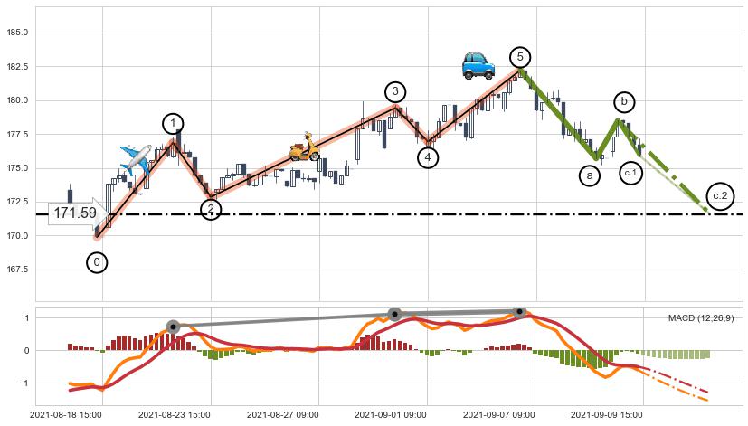 ➣ c.1: 当前c浪回调位置(09-09:14, 175.89),仍然有回调空间