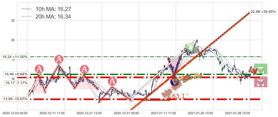 ♘ 支撑价格位16.17,可信任强度85.71%,距离最后交易2021-01-28 16:00形成的收盘价格16.36相差 -1.17%