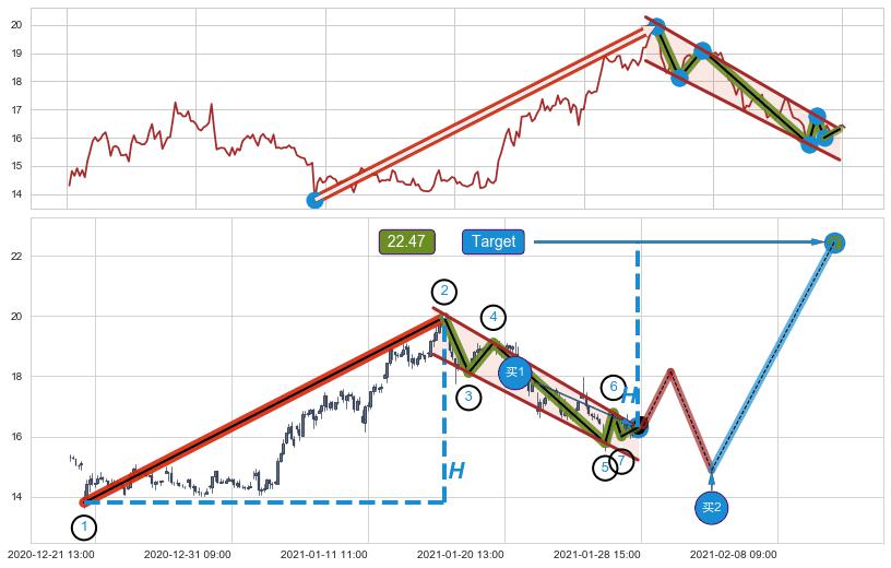 ➣ 最小中继整理涨幅→𝐇: 6.16 (𝐇旗杆的长度:旗杆起点→顶点)