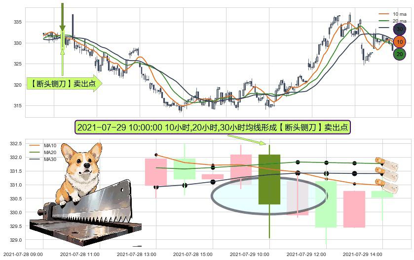 形态多维评估: ⚀ 2021-07-29 10:00:00小时显现 10小时-20小时-30小时均线 【断头铡刀】卖出点 看空信号,后市看跌,卖出