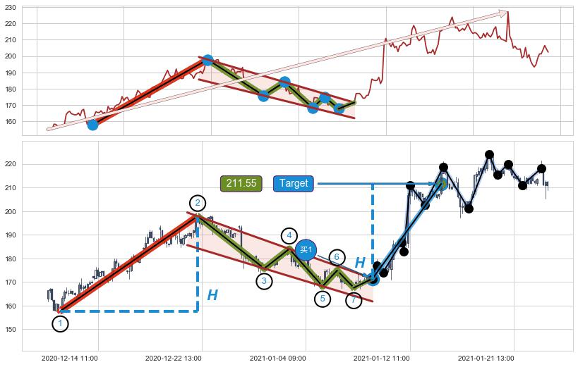 ➣ 最小中继整理涨幅→𝐇: 40.13 (𝐇旗杆的长度:旗杆起点→顶点)