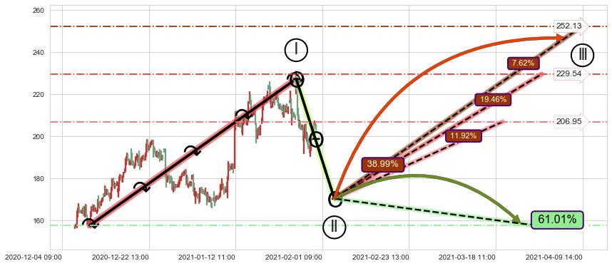 ➢ 循环浪继续向上【最高】位置(04-09:14, 252.13),匹配聚类样本比例19.53%, 可能性概率7.62%