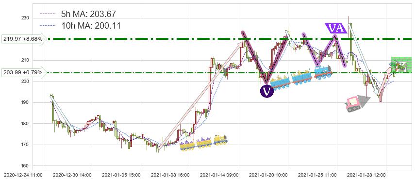 ♘ 阻力价格位219.97,可信任强度80.24%,距离最后交易2021-01-28 16:00形成的收盘价格202.40相差 +8.68%