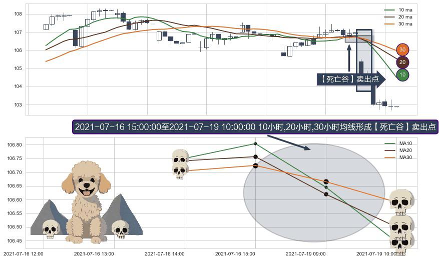 形态多维评估: ⚀ 2021-07-19 09:00:00-小时至2021-07-19 10:00:00-小时显现 10小时-20小时-30小时均线 【死亡谷】卖出点 看空信号,后市看跌,卖出