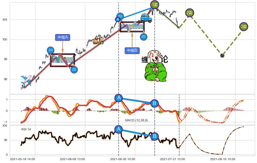 ➣ 【已完成】缠论 起点:05-13:15,完成第1中枢A,完成第2中枢B,终点:07-08:14,缠论共309交易小时