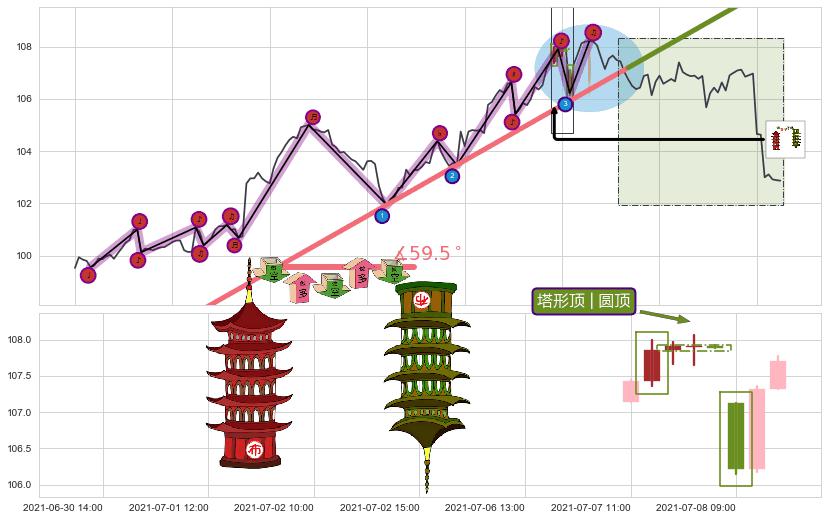 ♘ 阻力价格位106.84,可信任强度65.37%,距离最后交易2021-07-19 15:00形成的收盘价格102.87相差 +3.86%
