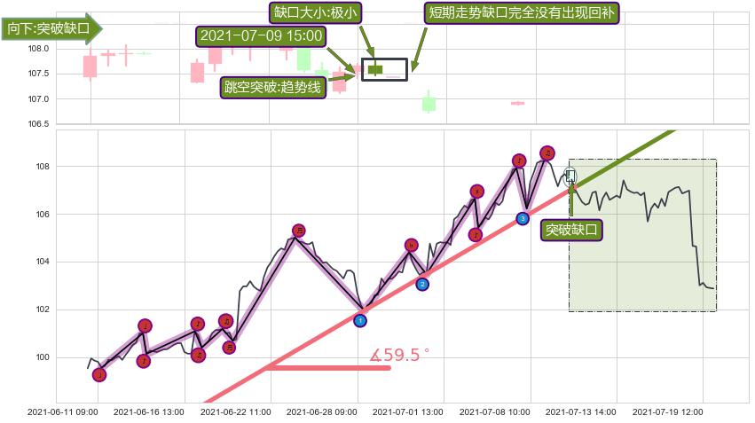 ➢ 2021-07-09 15:00形成:向下跳空【突破】缺口