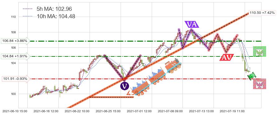 ♞ 5小时均线:102.96,10小时均线:104.48→ 快线<慢线