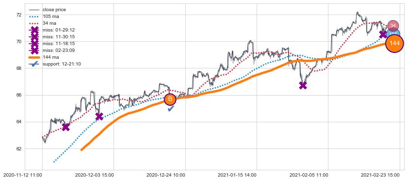 上涨趋势11-12 11:00-02-23 15:00,均线144确认关键支撑1处