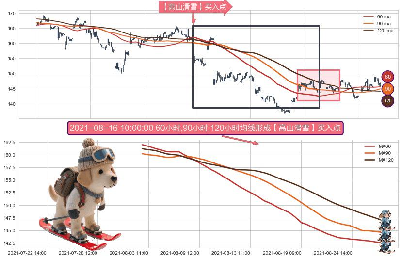 ⚀ 2021-08-02 14:00:00小时-2021-08-26 14:00:00小时显现 60小时-90小时-120小时均线 【高山滑雪】买入点 看多信号,后市看涨,买入