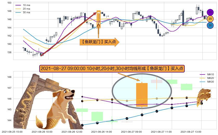 ⚀ 2021-08-27 09:00:00小时显现 10小时-20小时-30小时均线 【鱼跃龙门】买入点 看多信号,后市看涨,买入