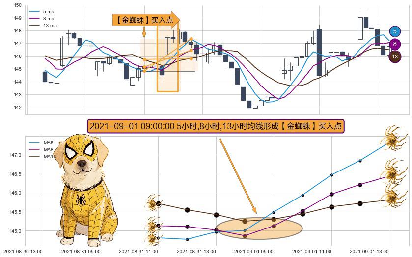 ⚀ 2021-09-01 09:00:00小时显现 5小时-8小时-13小时均线 【金蜘蛛】买入点 看多信号,后市看涨,买入