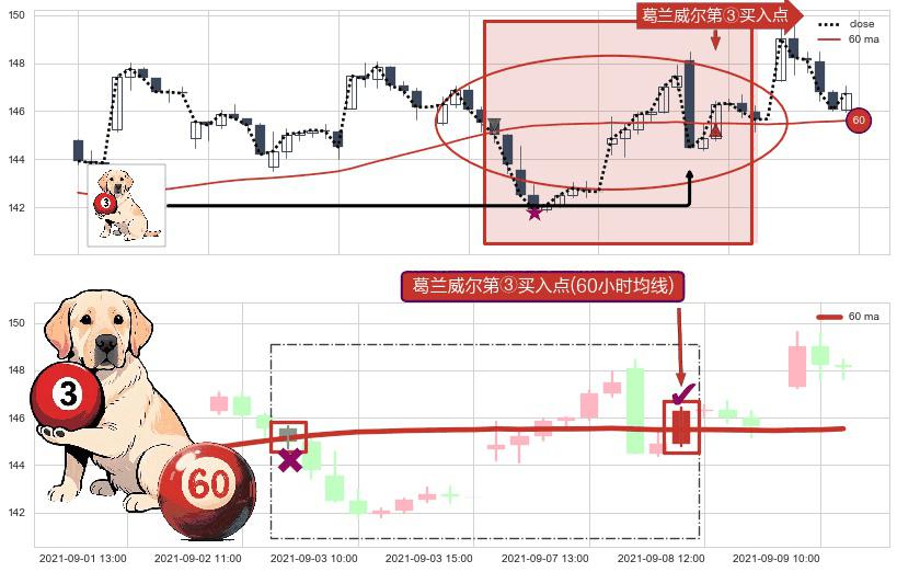 ⚀ 2021-09-08 11:00:00-小时显现 葛兰威尔均线 60小时均线 第③买入点 上升趋势的中继信号,后市看涨,买进信号