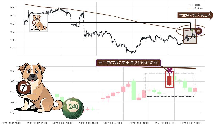 ⚀ 2021-09-09 09:00:00-小时显现 葛兰威尔均线 240小时均线 第⑦卖出点 下降趋势的中继信号,后市看跌,卖出信号