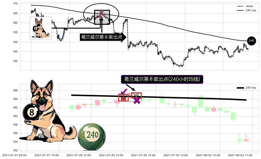 ⚀ 2021-07-29 12:00:00-小时显现 葛兰威尔均线 240小时均线 第⑧卖出点 下降趋势的中继信号,后市看跌,卖出信号