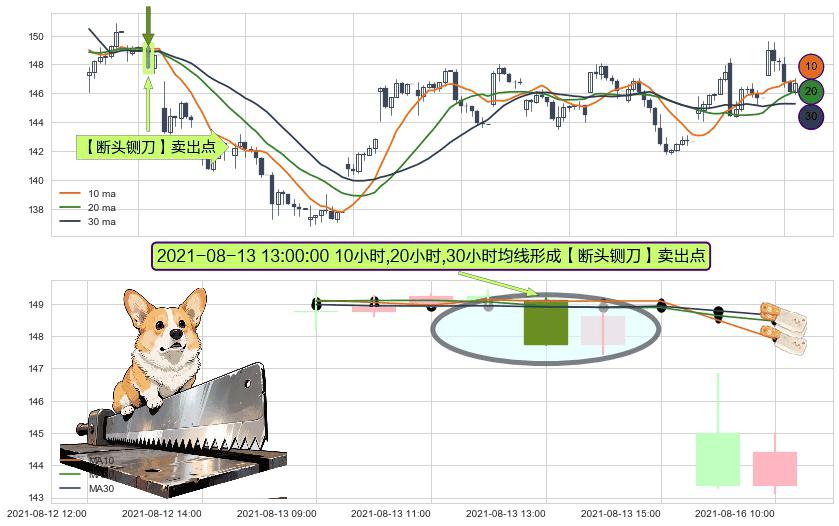 ⚀ 2021-08-13 13:00:00小时显现 10小时-20小时-30小时均线 【断头铡刀】卖出点 看空信号,后市看跌,卖出