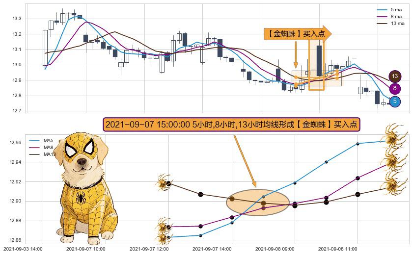 ⚀ 2021-09-07 15:00:00小时显现 5小时-8小时-13小时均线 【金蜘蛛】买入点 看多信号,后市看涨,买入